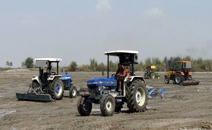 Sultanpur Lodhi: Work on removing sand and silt from the Baupur Mand area of Sultanpur Lodhi reached a new scale on Tuesday, with around 150 tractors working on the ground to carry