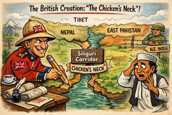 The Siliguri Corridor — India’s so-called “Chicken’s Neck” — is not merely a narrow strip of land in North Bengal. At just 20–22 kilometres wide at its narrowest point, it is the single terrestrial artery linking over 52 million citizens and roughly 262,000 square kilometres of the Northeast to the rest of India.