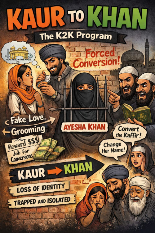 Imagine a young Sikh girl, full of dreams, lured into a trap. She meets someone who speaks her language, wears a kara, and whispers sweet promises. But it’s all a facade. The “Kaur to Khan” (K2K) ideology, exposed since the 1990s, targets our Kaurs—our princesses—for grooming and forced conversion to Islam. Perpetrators, often from Pakistani-origin gangs in the UK, rename them “Khan,” isolating them from family through drugs, threats, or emotional blackmail. Sikh Awareness Society reports document over 200 cases in the last five years alone, with