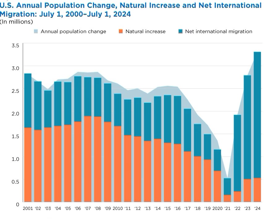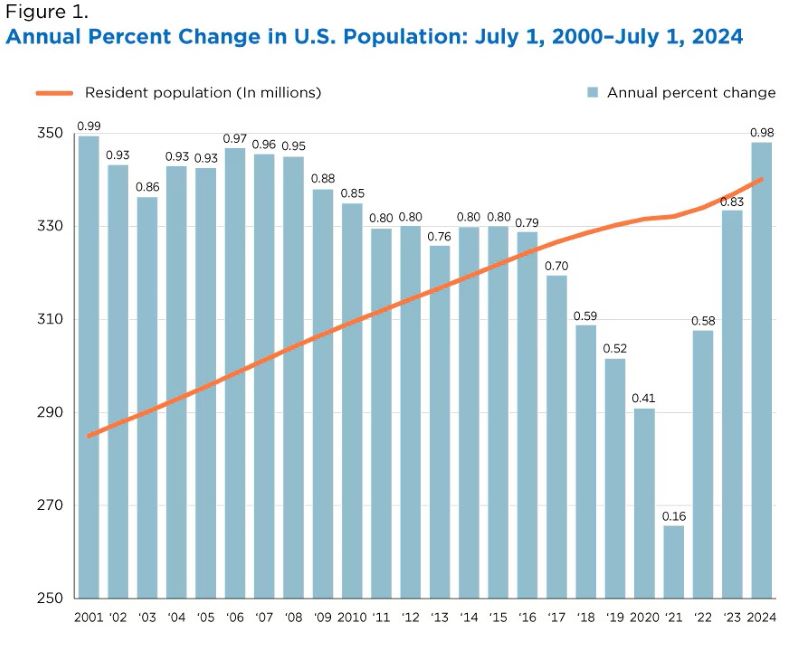By 2024, after three consecutive years of population growth exceeding 0.5%, the United States seems to have recovered from pandemic-era lows.