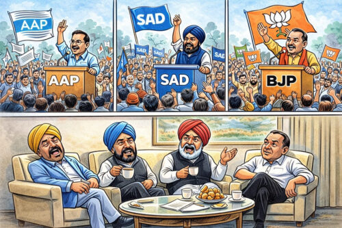 In Punjab, politicians change faster than the weather. When they’re in power, they forget the people. When they’re out of power, they remember only the people. And the public? We watch the show, buy popcorn, and wait for the next election — because in this state, comedy never ends.