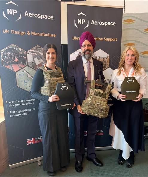 Dhesi’s engagement on this topic took him to meet with the NP Aerospace team to view British‑made female body armour, including designs being sent to the front line in Ukraine. These innovations reflect growing awareness that traditional, unisex armour often fails to fit women correctly a problem documented in research showing that poor fit can reduce comfort, mobility, and protection.