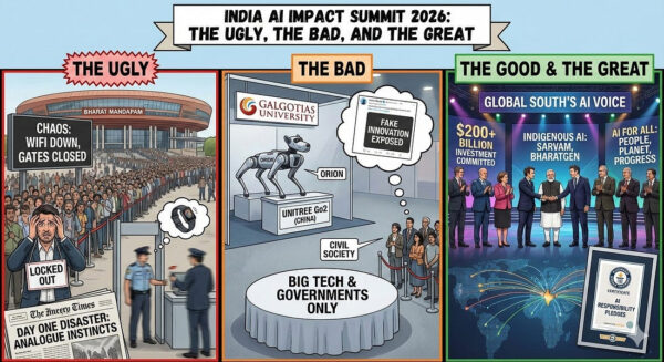 TechPolicy.Press flagged a structural concern: the summit’s CEO Roundtable and Leaders’ Plenary granted multinational corporations parity with sovereign governments, while civil society, labour leaders, and human rights defenders had no equivalent high-level platform. For an event themed “Sarvajan Hitaya, Sarvajan Sukhaya” (Welfare for All), this was an uncomfortable gap.